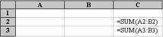 and =SUM(B2:D2) is the same as =B2+C2+D2.